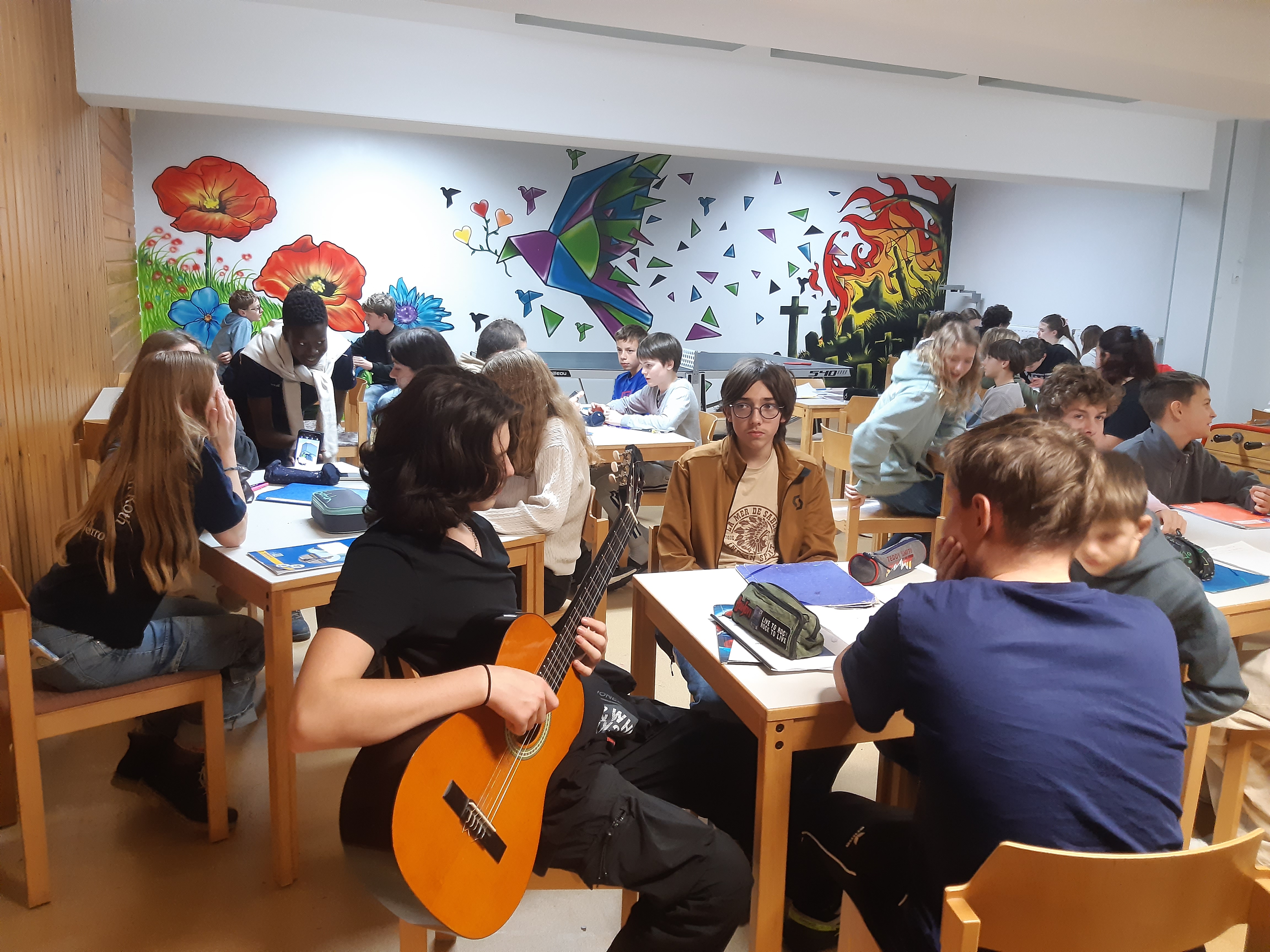 Ils ont travaillé sur le thème : « L’Europe, avec et pour nous » à travers de projets de groupes divers couronnés par une production finale (écriture et enregistrement d’une chanson bilingue ou multilingue sur le thème de l’Europe, un nouvel hymne européen) réalisée sur place.